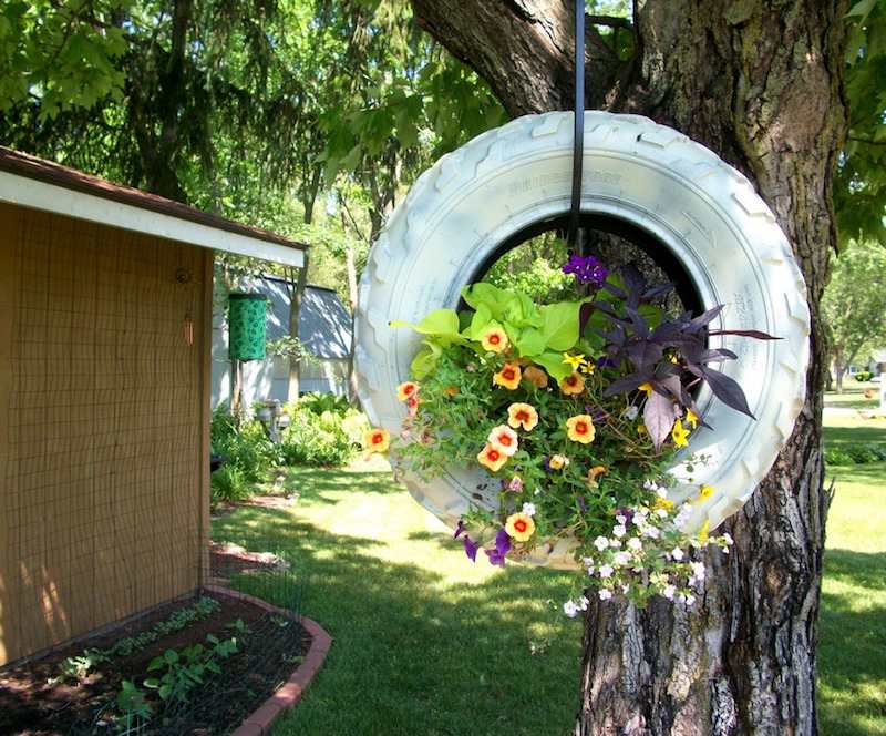 Résistants et imputrescibles, vos vieux pneus trouveront tout naturellement leur place dans votre jardin. Accrochés par des sangles ou des chaînes à une branche d’arbre ou à un portique, ils formeront une balançoire parfaite pour vos enfants.